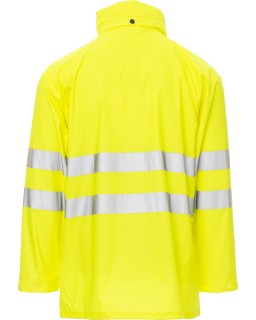 1 128 KčBunda proti dešti potažená PU vrstvou, s vysokou viditelností s reflexními pruhy 3M, raglánové rukávy, nylonový celozip s klopou na druky, kapuce v límci, stahovací šňůrka v.