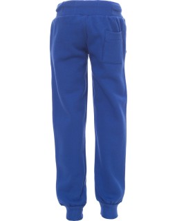 531 KčDětské teplákové kalhoty s elastickým žebrováním v pase a na nápletech nohavic, poklopec na zip, bílá stahovací šňůrka s kontrastním prošitím a kovovými kroužky, dvě přední.